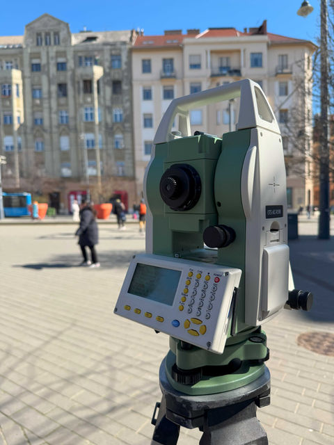 Helyszíni felmérés modern műszerekkel az ingatlan pontos feltérképezéséhez.