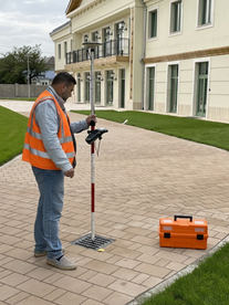 Helyszíni felmérés modern műszerekkel az ingatlan pontos feltérképezéséhez.
